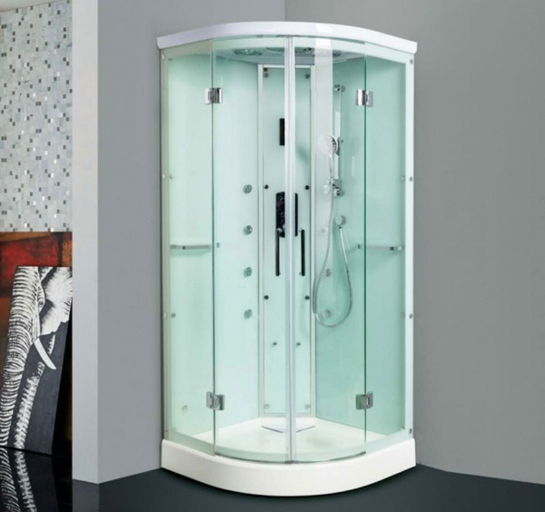 Стенки выполнены из закаленного стекла толщиной 8 мм, выдерживающего перепады температур, механические воздействия. Привлекает обширный функционал кабины: вентиляционная система, озоно-, хромо-, ароматерапия, радио, с возможностью настройки 20 радиостанций, паровая баня, гидромассаж, Bluetooth.