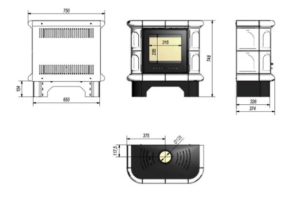| Особенности: | изразцовые, керамические, со стеклом, стальные |